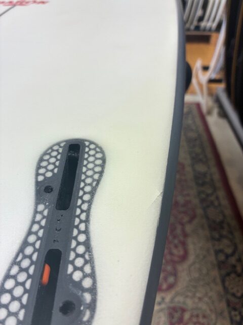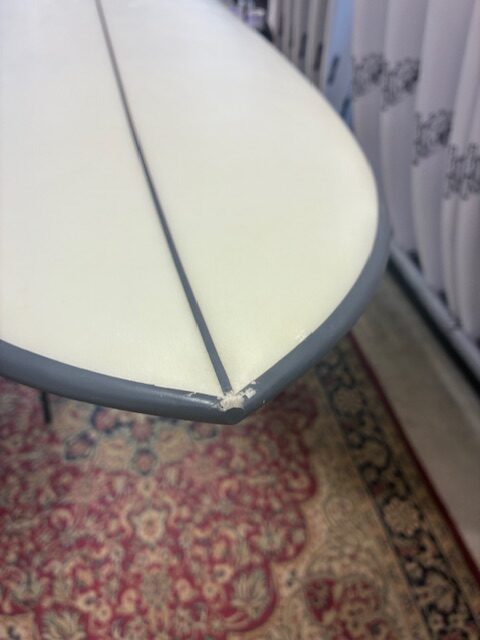 ノーズ先端に塗装剥がれ、フィンカップ周辺に修理の要らない傷があります。