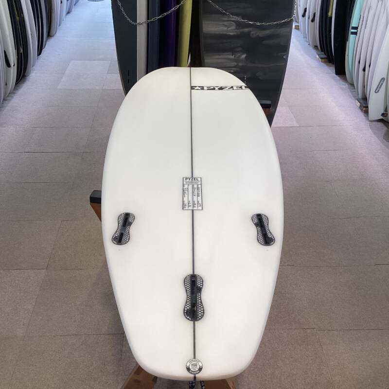 従来のハイパフォーマンスボードにやや幅広のアウトラインですが、ワイデストポイントセンターより1インチ後ろに、サーフボードの機能するゾーンをセンターより後ろに重点を置くことによりパフォーマンス性を維持しています。幅広のスカッシュテールはリフト性、ドライブ性を与え、サイドフィンあたりからテールエンドに向かい直線的に絞りヒップ(角)を作り出すことでターン時の支点となりタイトなターンとリップでのリリース性を生み出しています。