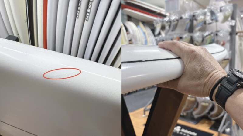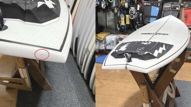 新品未使用品であっても、店舗にて展示中についた細かい傷がある場合もございます。中古ボード特有のものでございまして、価格がお安くなっている理由の一つでございます。