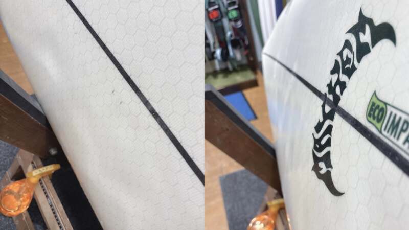新品未使用品であっても、店舗にて展示中についた細かい傷がある場合もございます。中古ボード特有のものでございまして、価格がお安くなっている理由の一つでございます。
