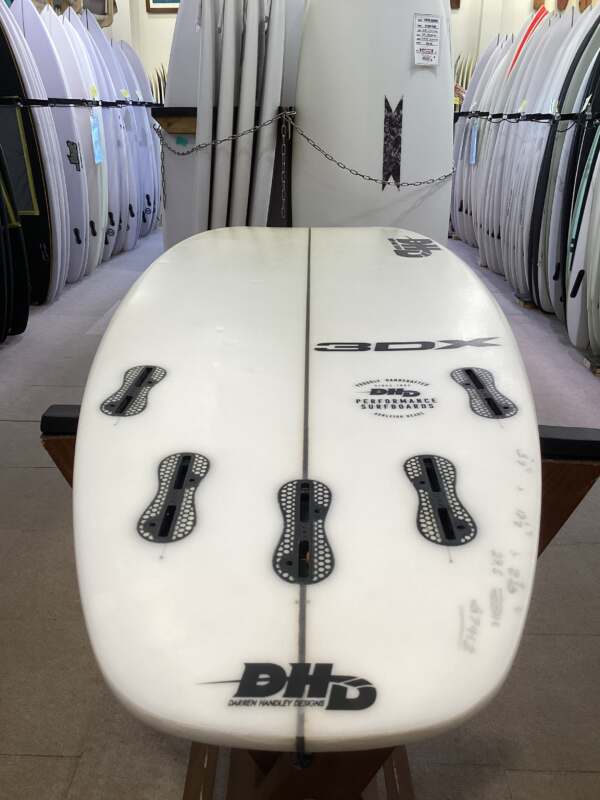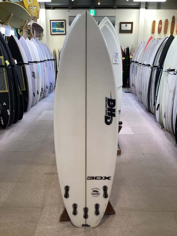 シェーパーのダレンによると、3DXはボーリュームたっぷりのモデルで、コンケーヴは浅めになっている。テール幅を広くして、テールの厚みも残してある。ノーズ幅も広く取ってあるが、フィッシュボード程ではない。アクションの入れづらい小さい波でも、ハイパフォーマンスサーフが出来るようになっている。厚みもボリュームもたっぷりと取ってあり、海の中での楽しさがそれ以上のものになるだろう。