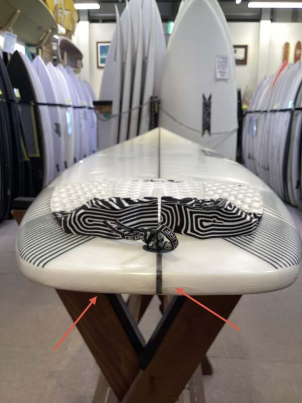 新品未使用品であっても、店舗にて展示中についた細かい傷がある場合もございます。中古ボード特有のものでございまして、価格がお安くなっている理由の一つでございます。