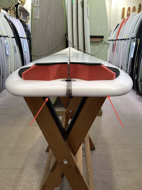 広めのノーズが波をしっかりキャッチし、スムーズなテイクオフをアシスト。さらに、ボード全体にたっぷりとボリュームを持たせることで、驚異的なパドル性能を実現し、余裕のあるライディングへと導きます。