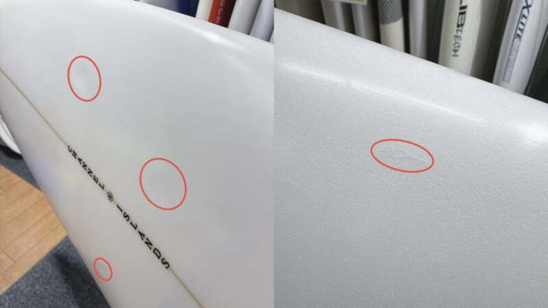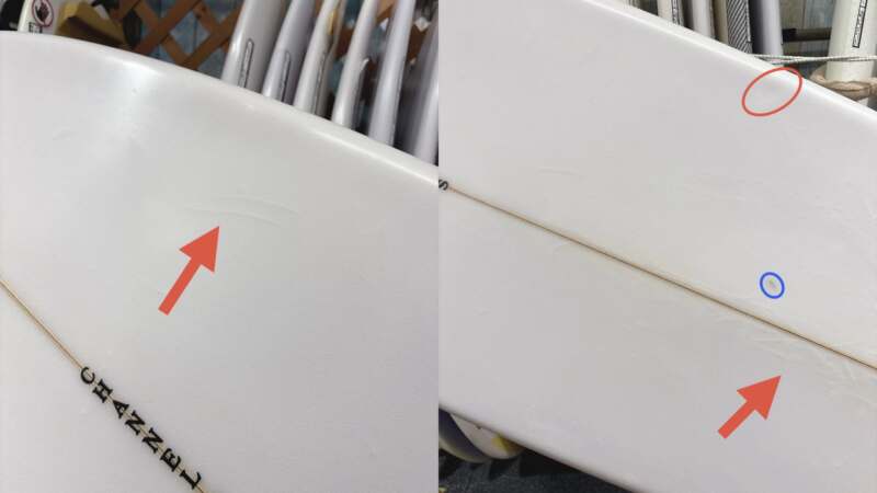 スリキズ・凹み・小さなクラックがあります。1か所修理 ( 青〇 ) をしています。