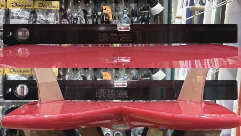 アウトラインはTWIN FINモデルの中ではミディアムなボリューム感