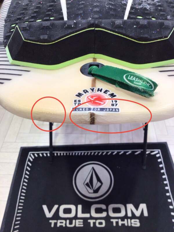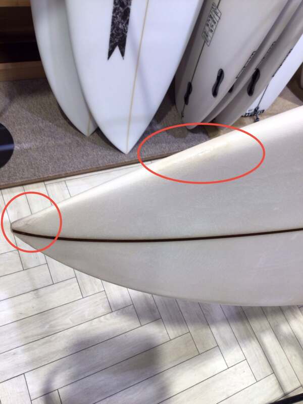 ノーズにリペア跡、リペアが必要な箇所があります。
