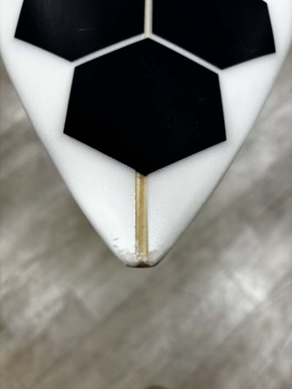 デッキボトム共に凹みやスジが入っており全体的に使用感ありますがすぐにリペアが必要な傷は無い状態です。ノーズ先端部分はリペア跡ありますが綺麗に直ってます。コンペを回っている方のスペアボードにも最適です。
