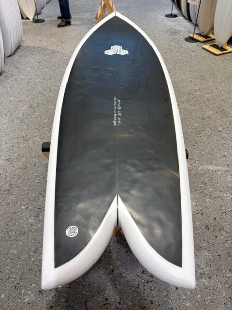 このボードは、ブリット・メリックが巧みにデザインし、伝統的なフィッシュシェイプを基盤にしながらも、現代的な要素を大胆に取り入れています。