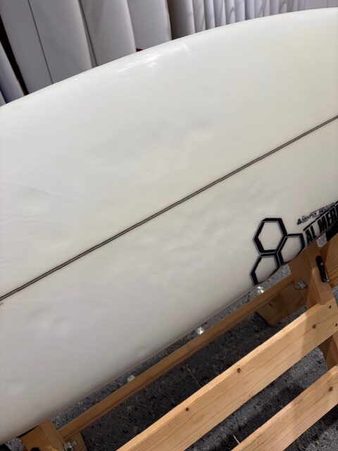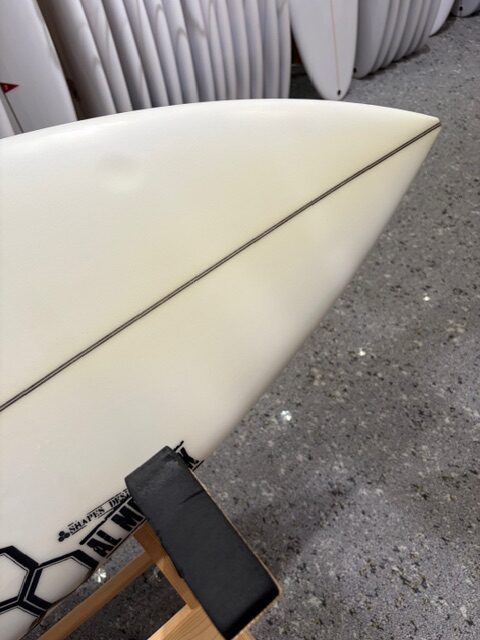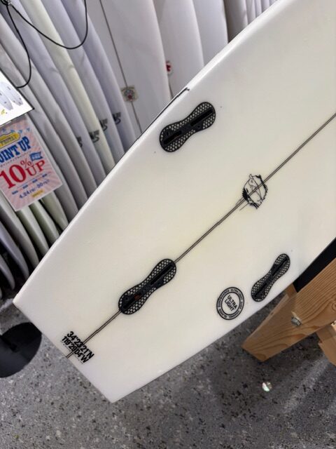 大きく【NECKBEARD】と変わるのはあまりアウトラインは変わらず重心はフロント重心になります。かつテールがここまで広いことによって波の力を拾いやすいので日本の日常的なビーチブレイクにはすごく特化しています。