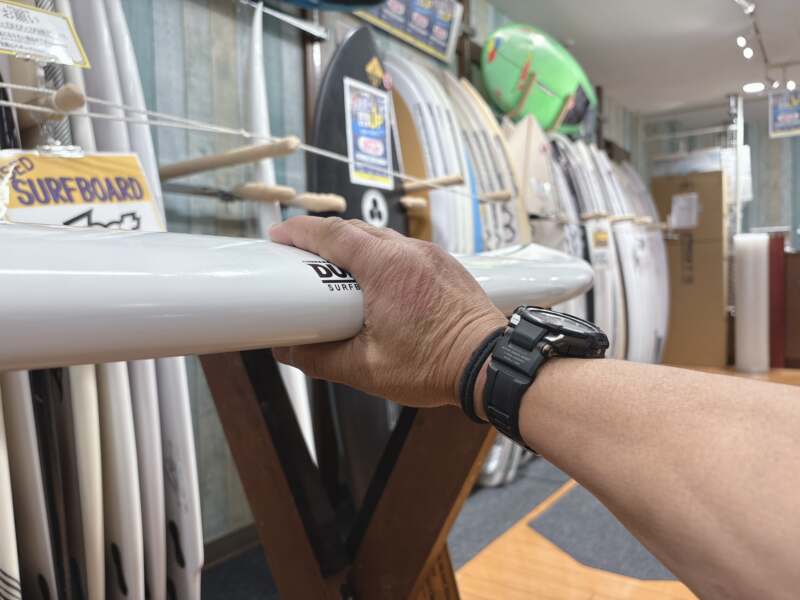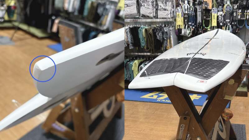 ノーズリフトは十分あるためパワフルで掘れた波にも対応できます。
