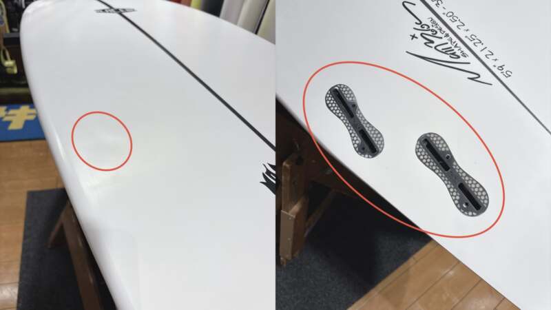 ボトム面、スリ傷・凹み・修理跡 ( FINBOX ) があります。