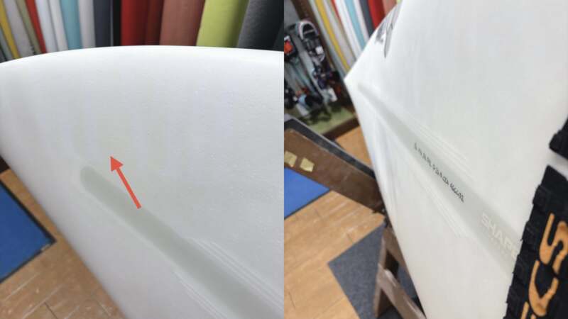 新品未使用品であっても、店舗にて展示中についた細かい傷がある場合もございます。中古ボード特有のものでございまして、価格がお安くなっている理由の一つでございます。