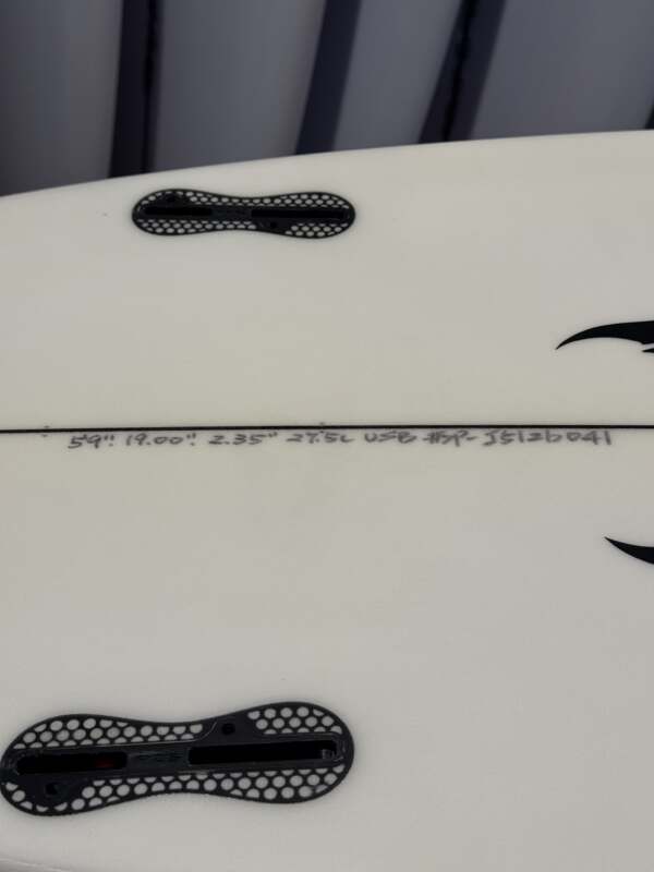 • 状態: 評価B+(全体的にきれい、日焼けわずか、ノーズデッキ修理跡、レールクラック2か所、ノーズ/テールきれい)