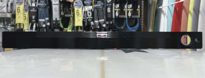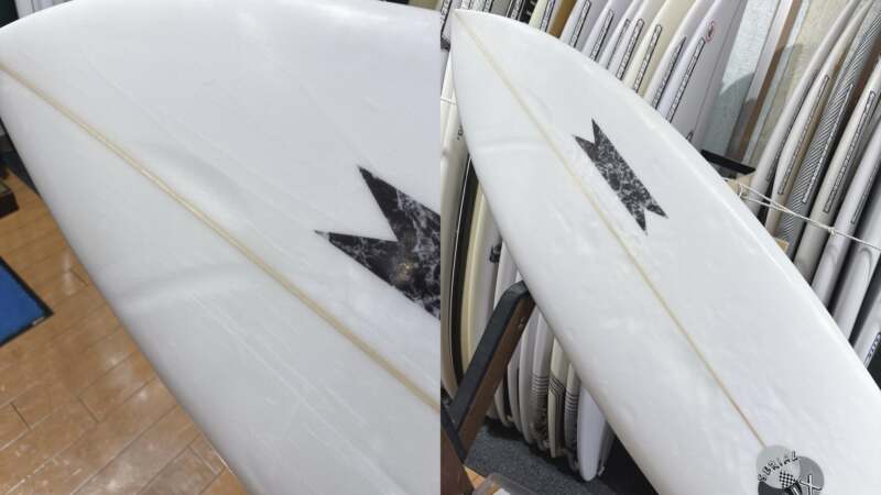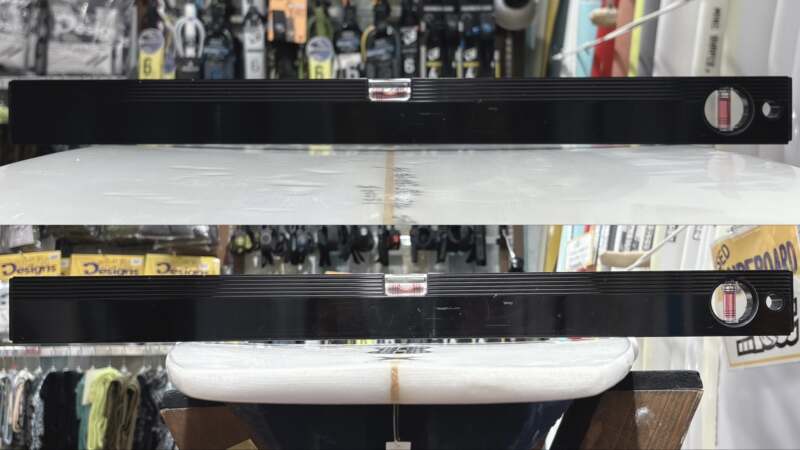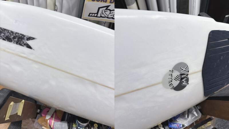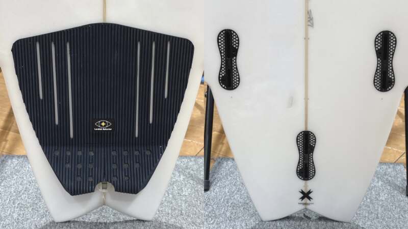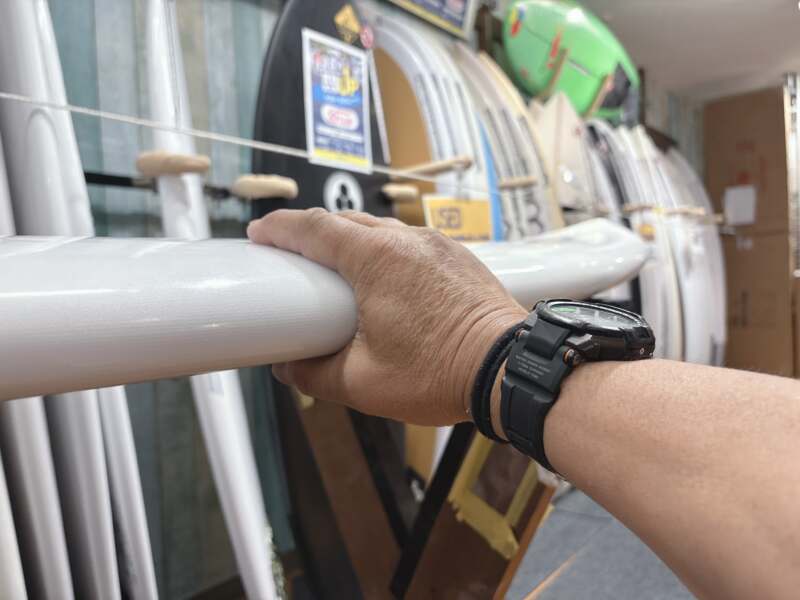 極端なテーパーにはせず、レール全体を使って波にフィットする操作感を重視しています。