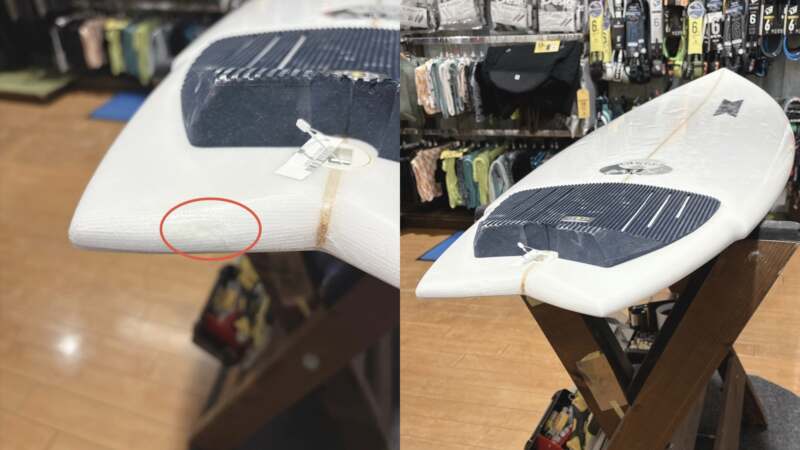 新品未使用品であっても、店舗にて展示中についた細かい傷がある場合もございます。中古ボード特有のものでございまして、価格がお安くなっている理由の一つでございます。