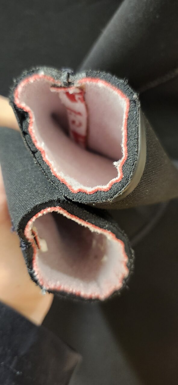 全体にシワ多く、手首にサケあり。ゴムの劣化あまりなく使用には問題ない範囲です。